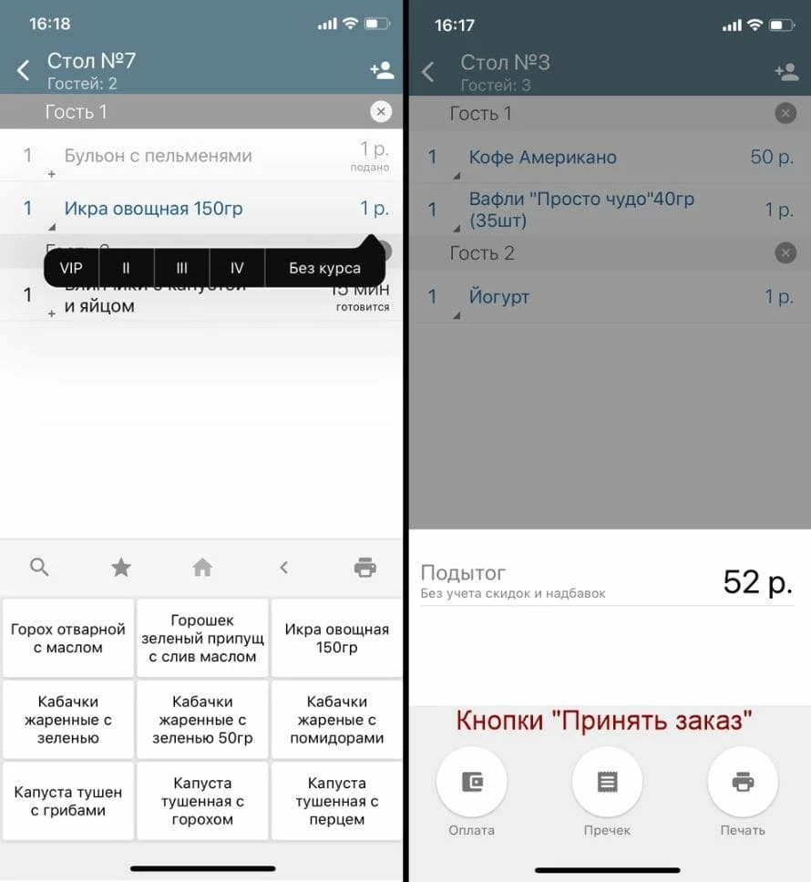 - разделение заказов по гостям и добавление комментариев к заказу;
