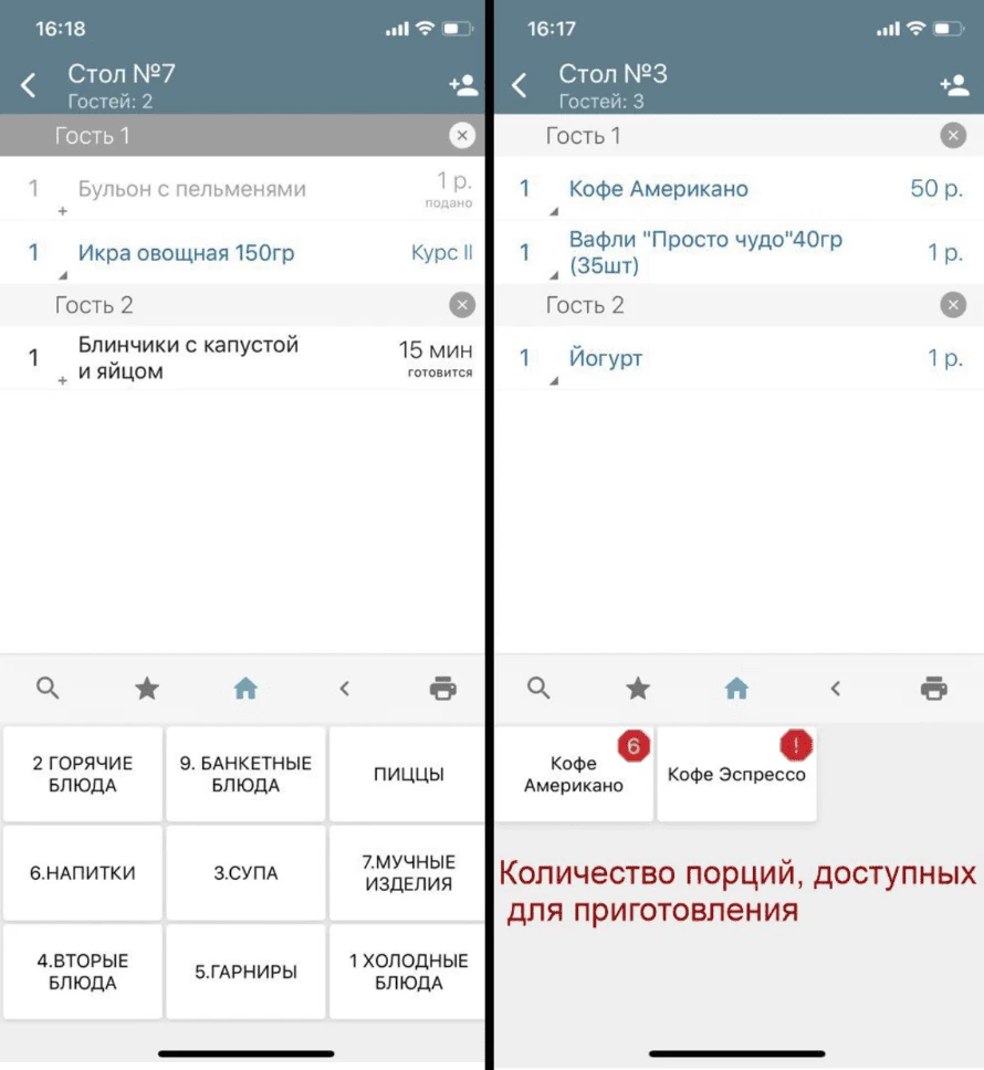 Когда кухня заканчивает приготовление блюда, официанту на телефон приходит уведомление об изменении статуса заказа и он может его забрать. Больше не нужно постоянно ходить на кухню, чтобы узнать, когда будет готово блюдо.