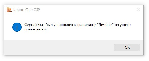 8. Сертификат установлен. Можно закрыть все открытые окна КриптоПро.